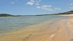 O Rio Tapajós, tem águas claras e tem poucos peixes e animais.
